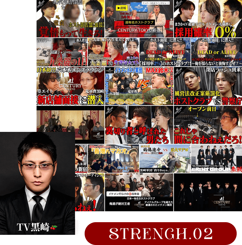 チャンネル登録者数4万人超えの大人気チャンネル【TV黒崎】では、《スポーツ選手日本代表主将》や《K1・PRIDE選手》との共演など普通のホストクラブ業界では不可能なコラボも可能。